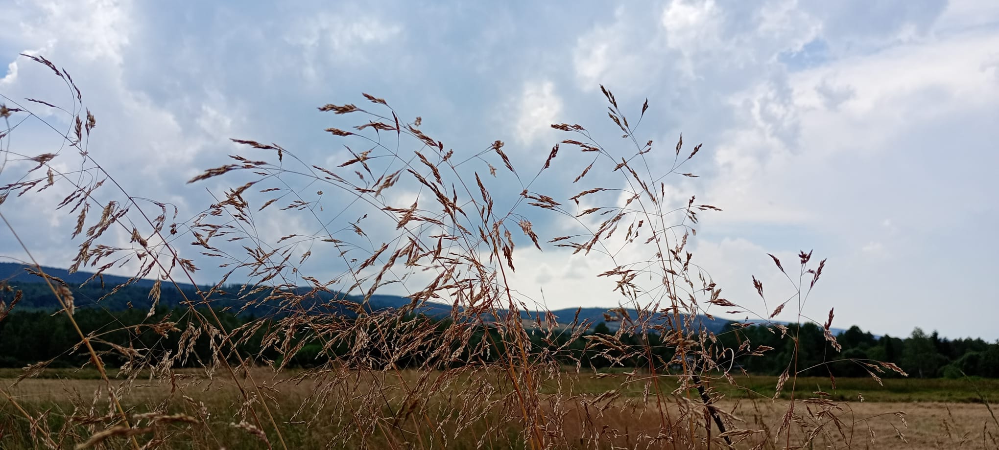 Lato w pełni. Pola i łąki zmieniły kolor. Prognozują burzę i wszystkie znaki na ziemi i niebie na to wskazują, ale dla niego to nie powód, aby zrezygnować z wędrowania. Gospodarz przyjechał niby na chwilę załatwić tylko sprawy w urzędzie, jednak górskie buty tak na wszelki wypadek wrzucił do bagażnika. Z radością w duszy po przeczytanym wpisie od Gości wypił niespiesznie kawę i ruszył. Zatęsknił za bukiem na Tłoczynie, ale jak widzę z przesyłanych zdjęć ograniczył się do samotnego modrzewia na Prochowej. Pewnie buka odwiedzi jutro.